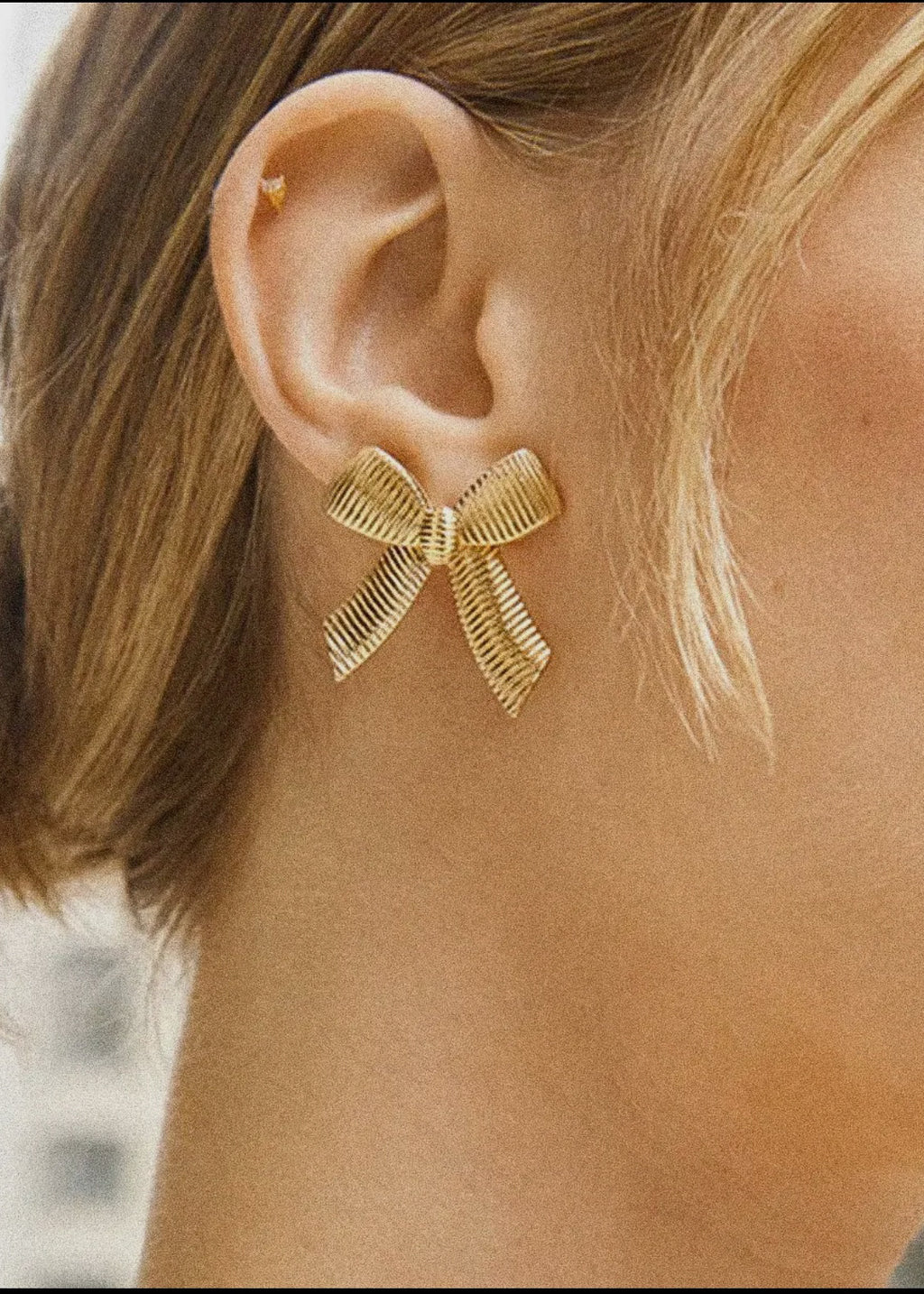 Lillian 18 kt gold non tarnish-Bow stud earrings