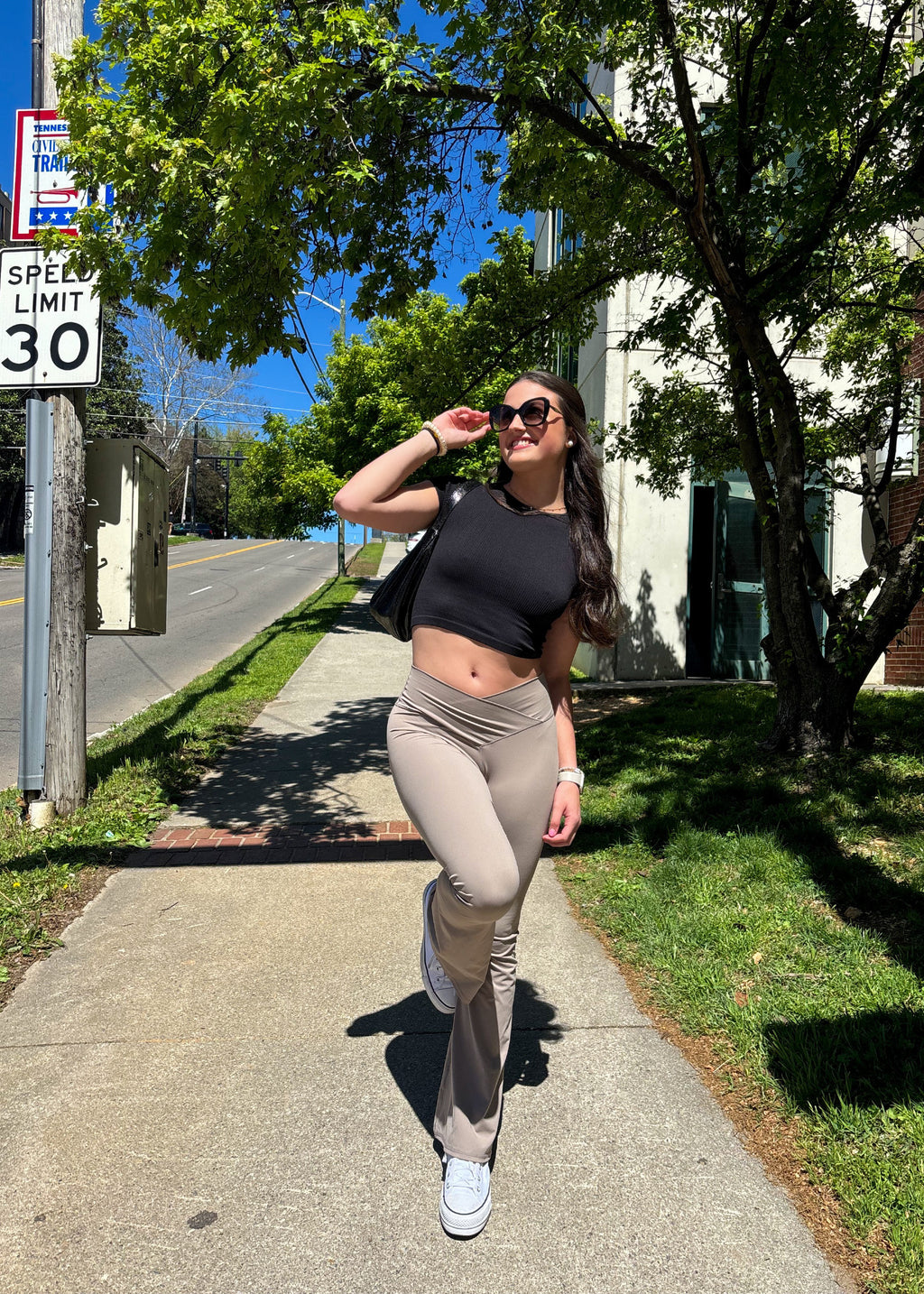 Allie slit crop tank-tan